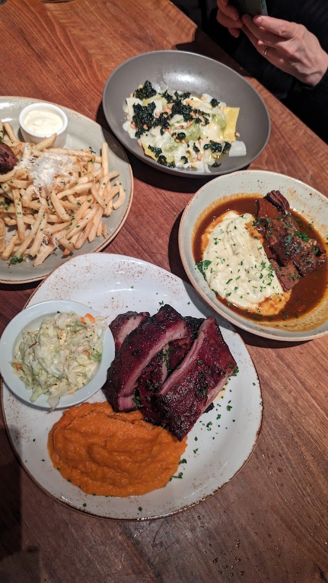 The moment you step inside, you are greeted by the cozy, historic charm of the dining area, complemented by stylish decor that evokes nostalgia. The ambiance is both casual and refined, making it the perfect destination for everything from family dinners to intimate date nights.